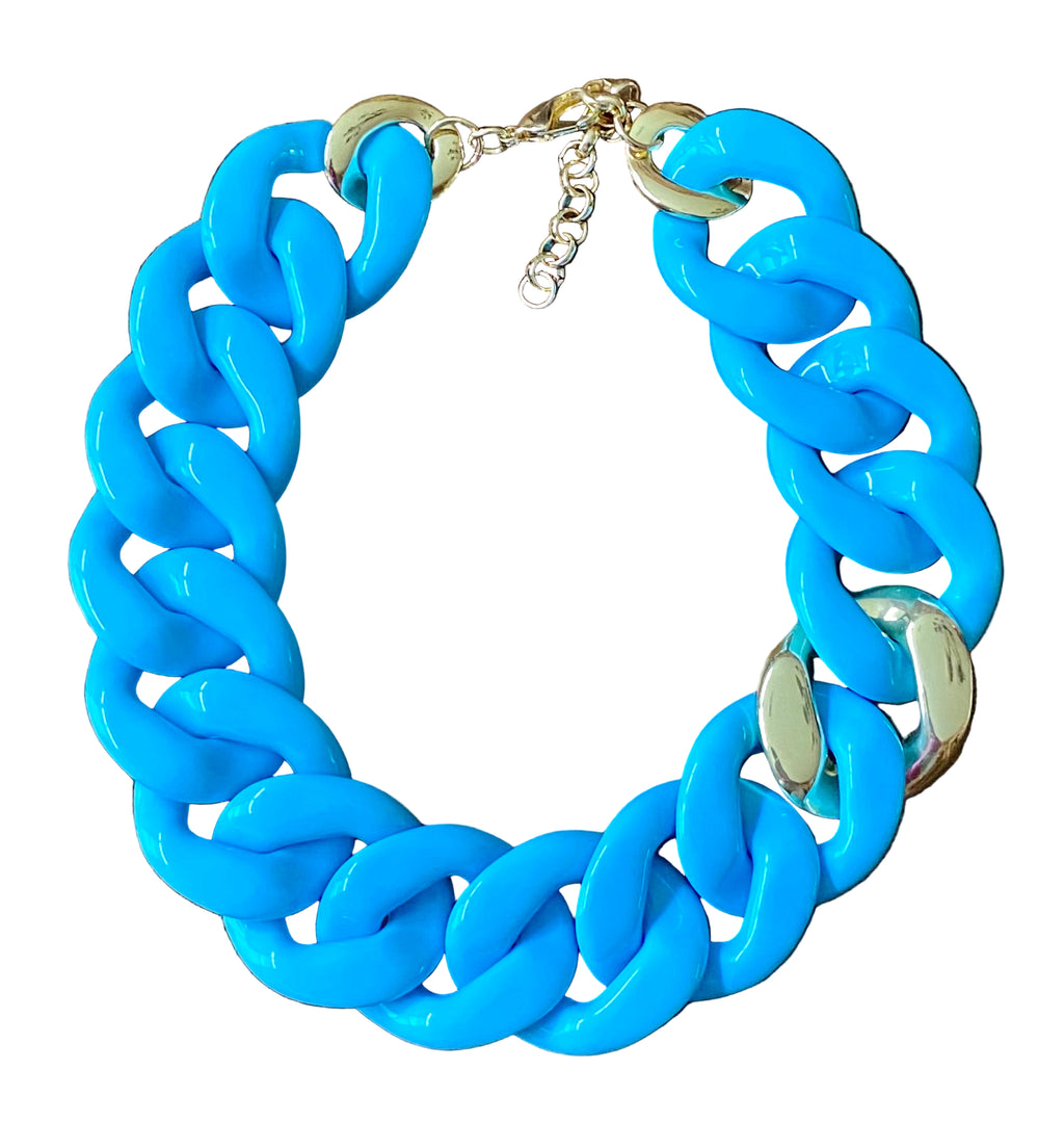 Chunky Resin Chain Link Necklace with Gold Accent/ Statement Necklace