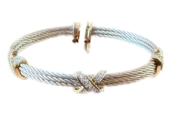 Cable Cuff Bracelets with Pavé "X" design