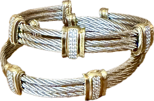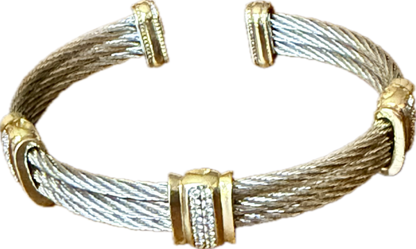 This classic, elegant Silver/Gold Twisted Cable Wire Cuff with Accent Beads adds a touch of sparkle to any outfit. Its timeless design exudes sophistication and charm, making it the perfect accessory for any occasion. Elevate your style with this must-have piece!