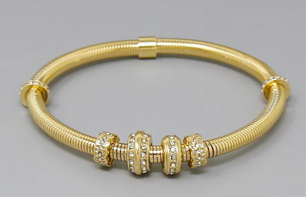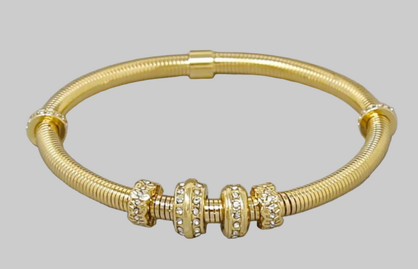 Elevate your wrist with this sophisticated spring bangle featuring delicate pavé charms that catch the light beautifully. Crafted with meticulous attention to detail, this statement piece combines timeless elegance with modern flair. Perfect for layering or wearing solo, it transitions seamlessly from day to evening. A versatile addition to any jewelry collection that celebrates refined taste and artisanal craftsmanship.